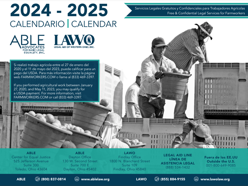 Each year thousands of people work in Ohio planting, cultivating, and harvesting the food we enjoy. They also work in other places, such as packing sheds and nurseries, that are important parts of Ohio’s agricultural economy. Many of these workers migrate through Ohio, following the growing season. Others work in Ohio throughout the year. Like everyone else, they are seeking the opportunity to work and provide for themselves and their families. LAWO helps to ensure these workers receive fair payment for their labor and have access to decent and sanitary working and living conditions. To do this, LAWO participates in extensive outreach activities to increase our access to Ohio’s agricultural workers and to identify their needs. As workers come to us for assistance, we protect their ability to participate fully in Ohio’s agricultural economy.